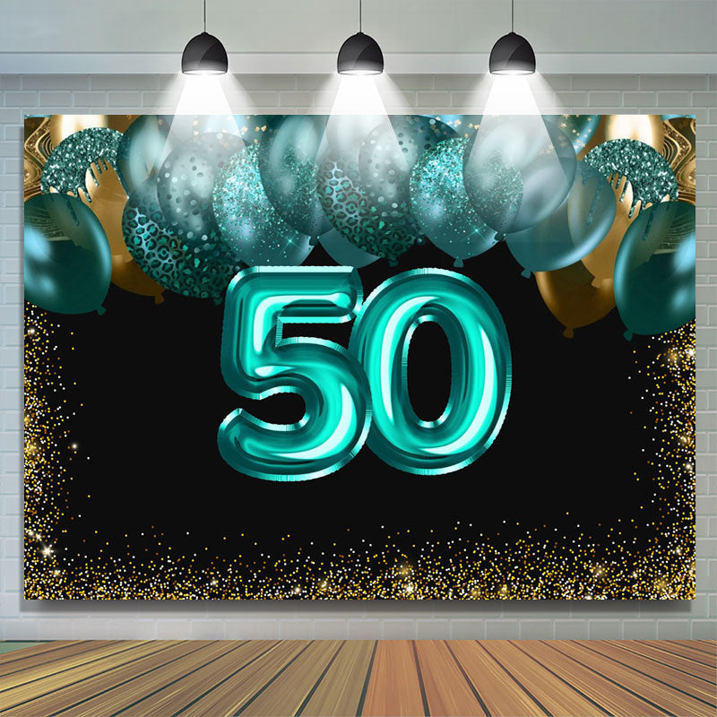Green Balloons Golden Bokeh 50th Brithday Backdrop
