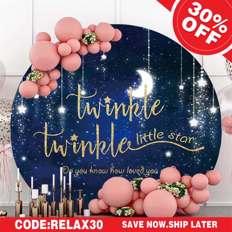 (Ship In 24HR) Round Twinkle Twinkle Little Star Baby Shower Backdrop