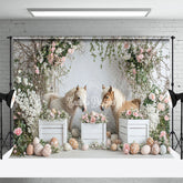 Lofaris Adorable Pony Pair Easter Eggs Floral Decor Backdrop