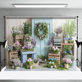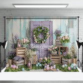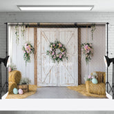 Lofaris Rustic Farmhouse Door Floral Wreaths Easter Backdrop