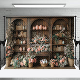 Lofaris Pink Floral Eggs Retro Bookshelf Easter Backdrop