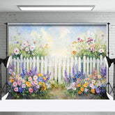 Lofaris Purple Oil Floral White Fence Spring Photo Backdrop