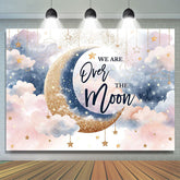 We Are Over Moon Cloud Twins Baby Shower Backdrop