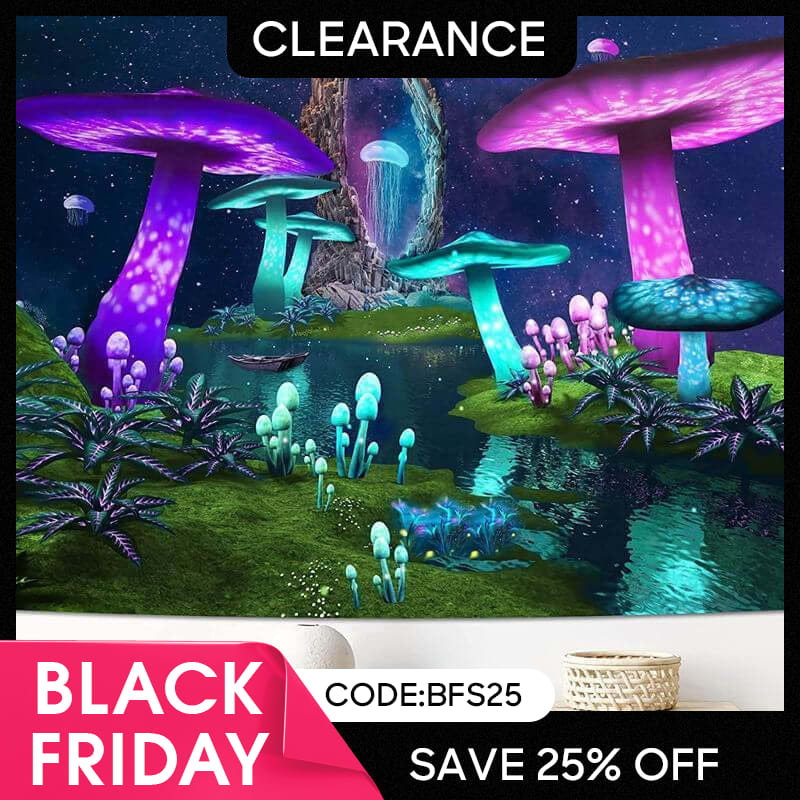 (Ship In 24HR) Light Mushroom Trippy Novelty Lake Galaxy Wall Tapestry