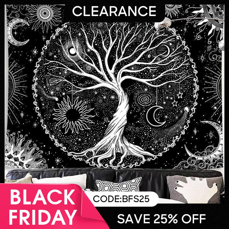 (Ship In 24HR) Tree of Life Black And White Moon Galaxy Wall Tapestry