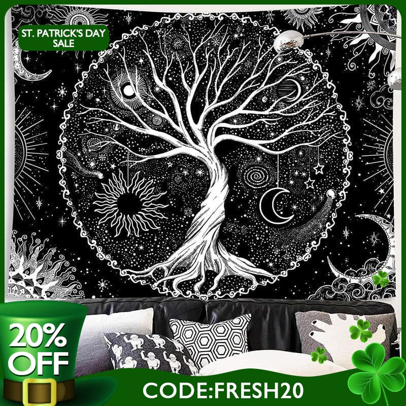 (Ship In 24HR) Tree of Life Black And White Moon Galaxy Wall Tapestry