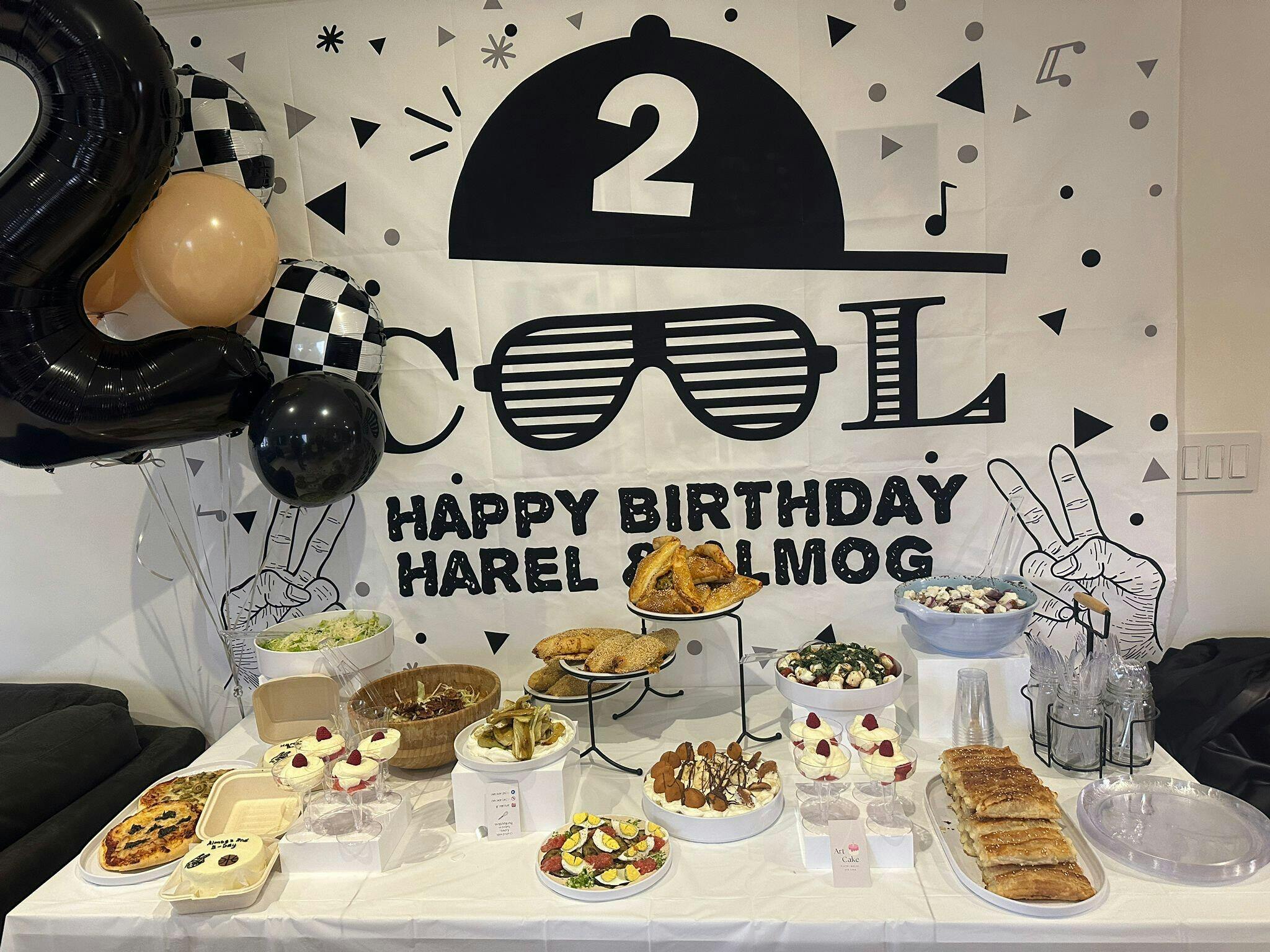 Cool Two Black White Happy 2nd Birthday Backdrop
