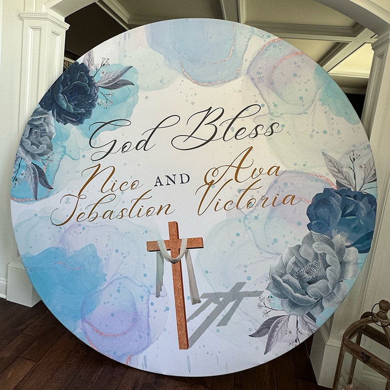 Lofaris Custom Photo Text Theme Party Fabric Round Backdrop
