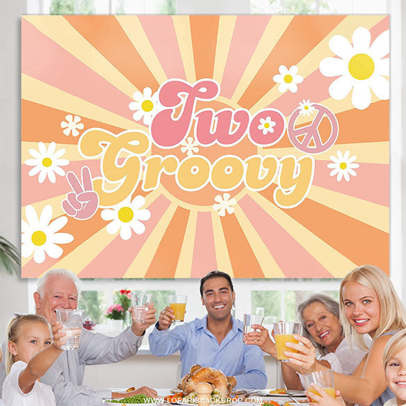 Groovy Flowers Stripe Simple Happy 2nd Birthday Backdrop