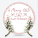 Lofaris A Merry Little Baby Shower Round Backdrop, Pink Christmas Tree and Polka Dots, Winter Holiday Party for Girl