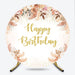 Lofaris Boho Happy Birthday Round Backdrop, Pampas Grass and Dried Flowers with Gold Glitter, Rustic Floral Photo Prop
