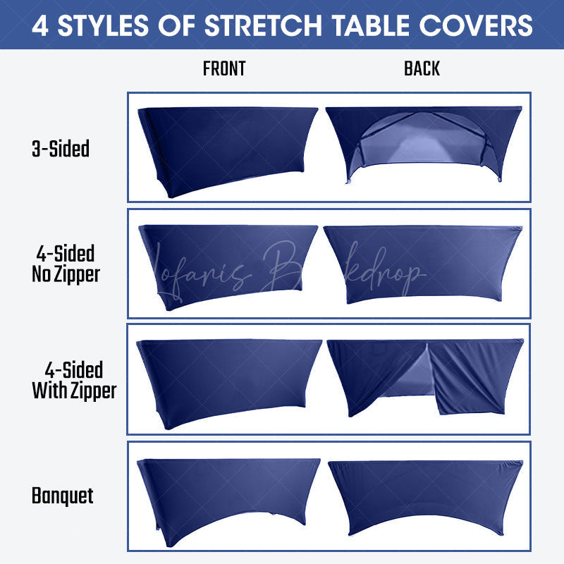 These table covers are made from extra-thick, high-density stretch fabric that is fully opaque, ultra-durable, and long-lasting. Unlike thinner alternatives, they are stain-resistant, wrinkle-resistant, and flame-retardant, ensuring a sleek, professional look for any indoor or outdoor event.
