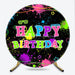 Lofaris Neon Glow Party Happy Birthday Round Backdrop, 80s 90s Colorful Paint Splatter, Blacklight Themed Photo Booth