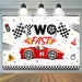 Lofaris Racing Car Two Fast Happy Birthday Backdrop, Sports Party Decor, Boys Photo Booth Background