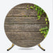 Lofaris Rustic Wood Round Backdrop, Dark Brown Wooden Planks with Green Ivy Leaves Background, Natural Garden Party Decor