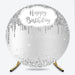 Lofaris Silver Glitter Happy Birthday Round Backdrop, Shimmery Celebration Party Decor, Photo Booth Wall for Party