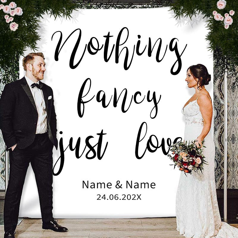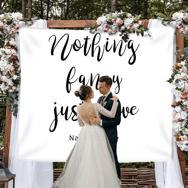 Personalized Just Love White Wedding Backdrop Banner