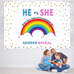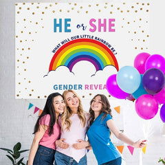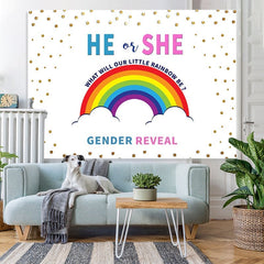 He Or She Rainbow White Dots Gender Reveal Backdrop