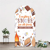 Lofaris S'more Fun Birthday Half Moon Arch Backdrop, Camping Campfire and Marshmallow Theme, Outdoor Party Photo Booth Decor for Kids