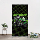 Lofaris Motorcycle Happy Birthday Rectangle Backdrop, Green Racing Superbike and Checkered Flag, Boys Biker Themed Party Decor