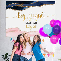 Blue And Soft Pink Glitter Golden Baby Shower Backdrop