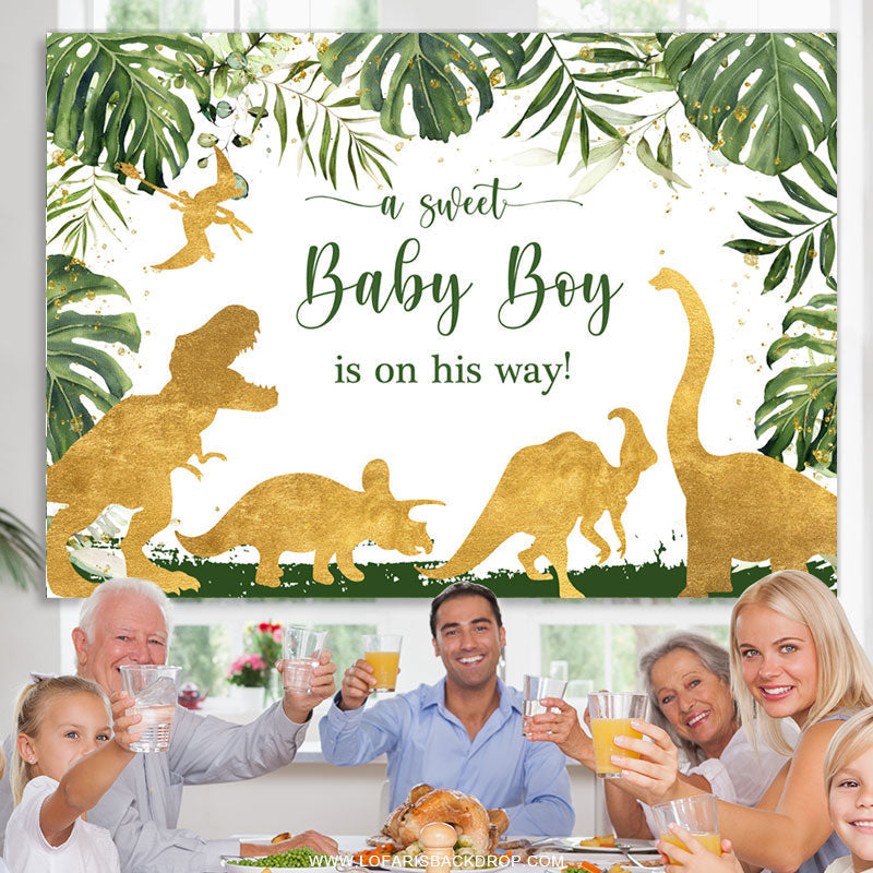 Boy Leaves Dinosaur Safari Gender Reveal Backdrop