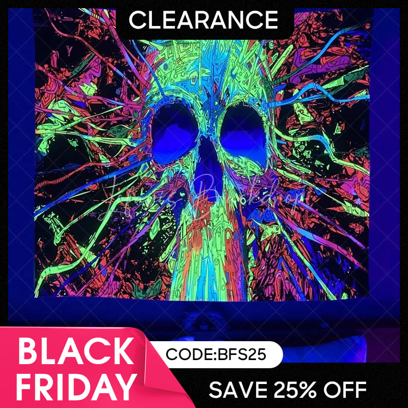 (Ship In 24HR) Colorful Hippie Skull Wall Blacklight Tapestry for Bedroom