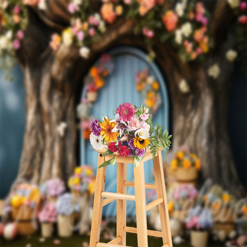 Floral Tree House Photo Birthday Cake Smash Backdrop