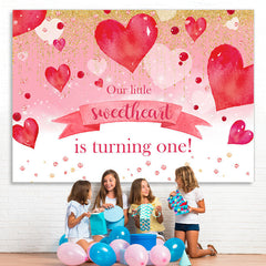 Gold Glitte Sweetheart Turning One Birthday Backdrop