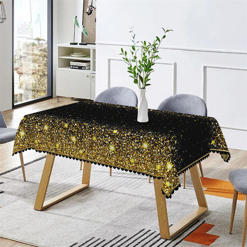 Gold Sparkling Black Tablecloth For Kitchen Decor
