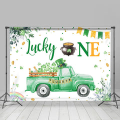Green Car Lucky One Happy St. Patrick'S Day Backdrop