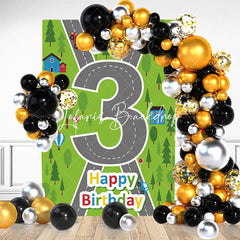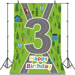 Green Forest Cross Road Happy 3rd Birthday Backdrop