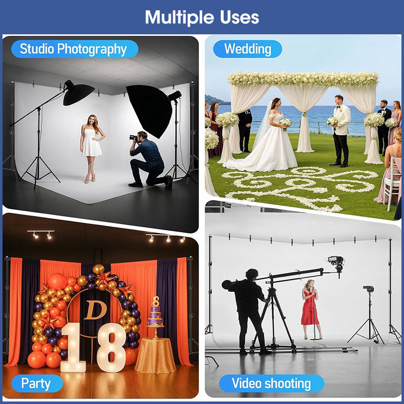 Made of durable aluminum alloy, this professional backdrop stand provides strong and stable support, ideal for portraits, live streaming, YouTube videos, photoshoots, interviews, weddings, parties, or event decorations.