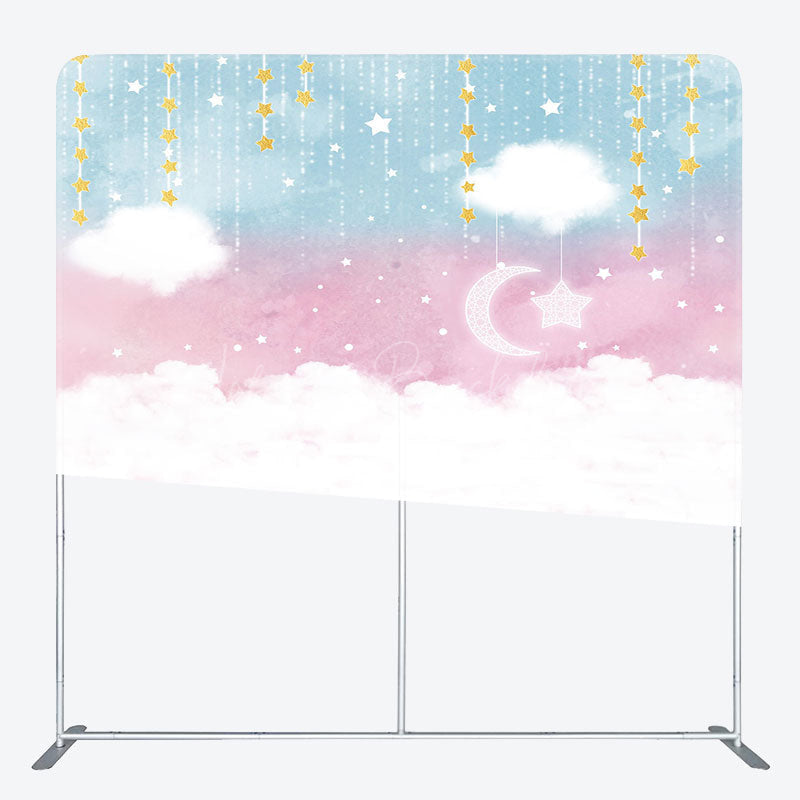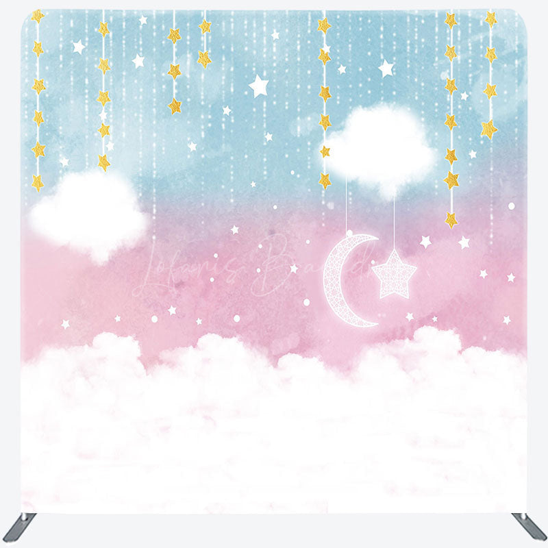 Lofaris Blue Pink Sky Cloud Star Birthday Pillow Case Backdrop