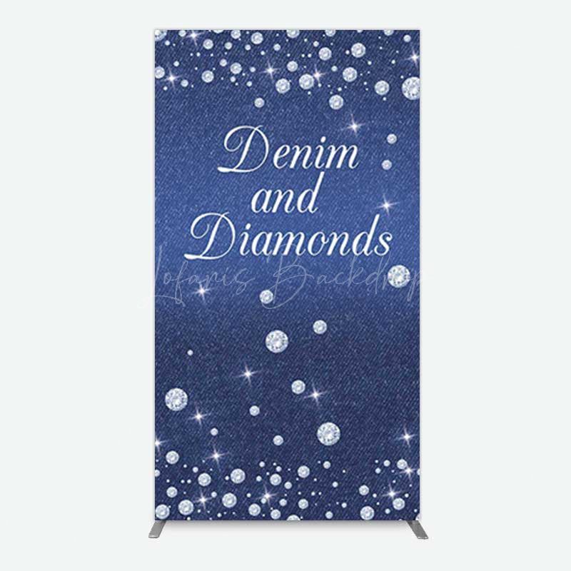 Lofaris Denim Diamonds Navy Blue Birthday Rectangle Backdrop