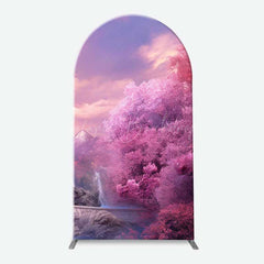 Lofaris Fairytale Princess Castle Arch Backdrop, Magical Pink Kingdom for Girl's Birthday, Dreamy Party Photo Booth Decor