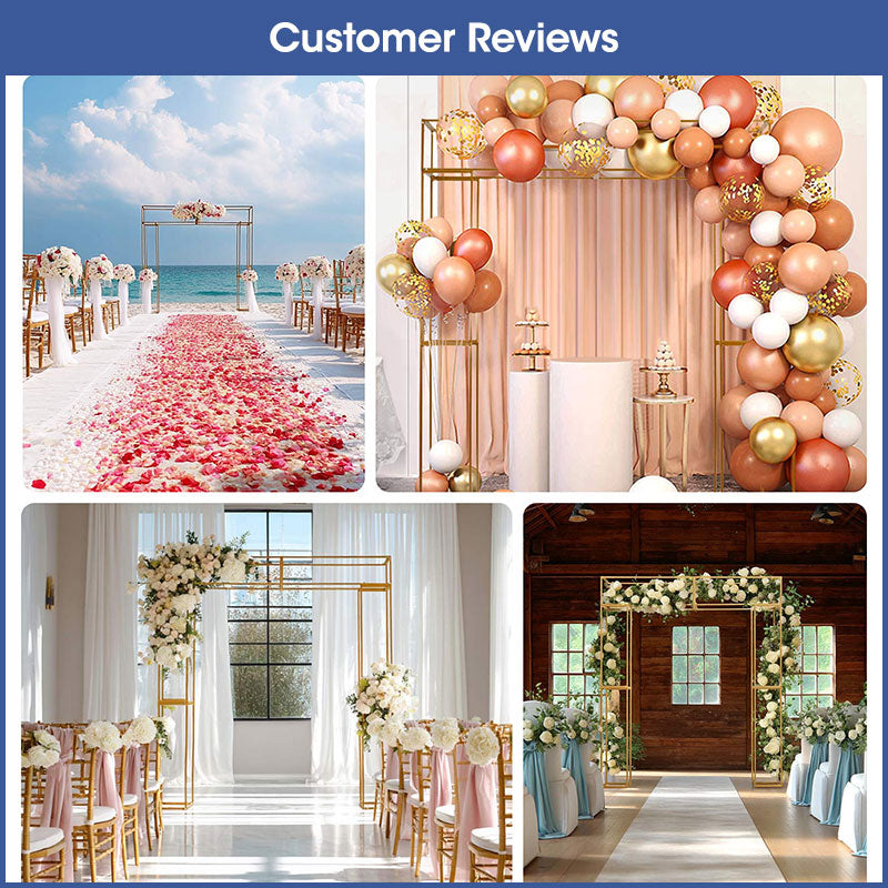The Heavy Duty Gold Metal Wedding Arch is a breathtaking addition to any event. Crafted from high quality metal with a gold finish, these stylish rectangular backdrop stands will look great at your wedding ceremony, parties and events. Set up anywhere instantly and see where your imagination takes you!
