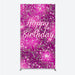 Lofaris Happy Birthday Pink Disco Rectangle Backdrop, Glam Sequin Glitter Effect, Girl's Night Out Party Photo Booth Decor