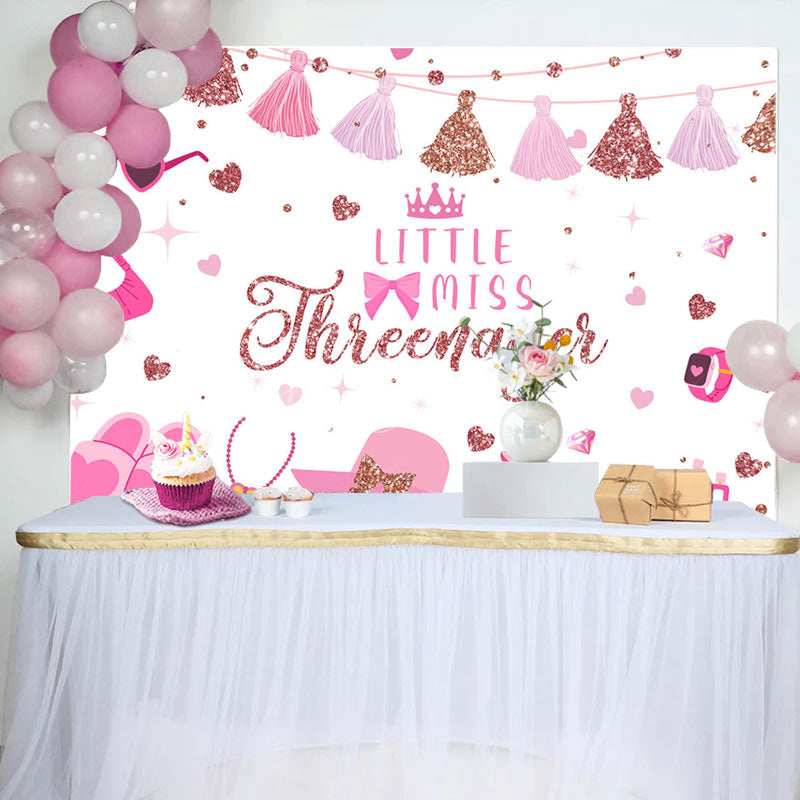 Lofaris Pink Princess Dress Miss Threenager Birthday Backdrop