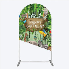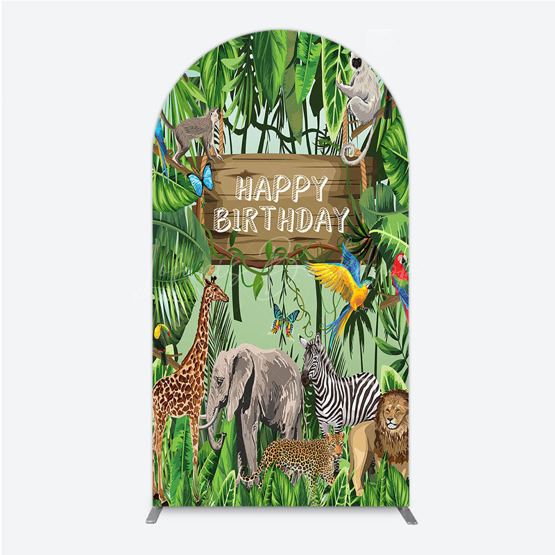 Lofaris Safari Happy Birthday Arch Backdrop, Wild Jungle Animals Theme, Tropical Party Decor for Kids Photo Booth