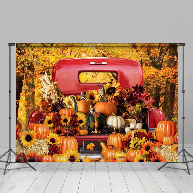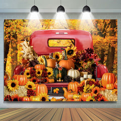 Maples Sunflowers Pumpkin Red Truck Autumn Backdrop