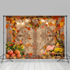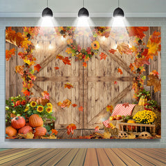 Maples Wood Door Pumpkin Sunflower Autumn Backdrop