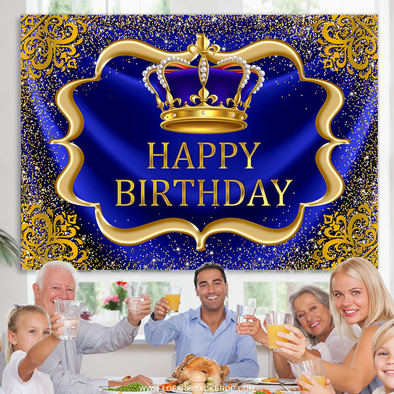 Glitter Golden Crown Navy Blue Birthday Backdrop