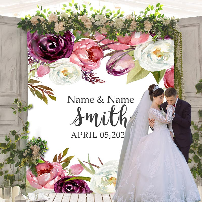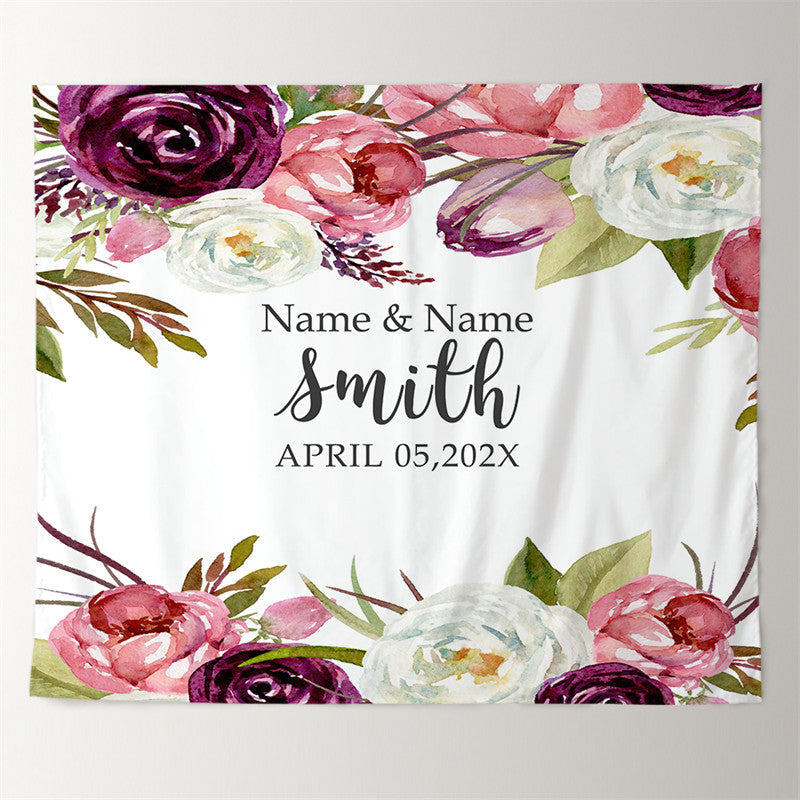 Personalized Purple Pink Watercolor Floral Wedding Backdrop