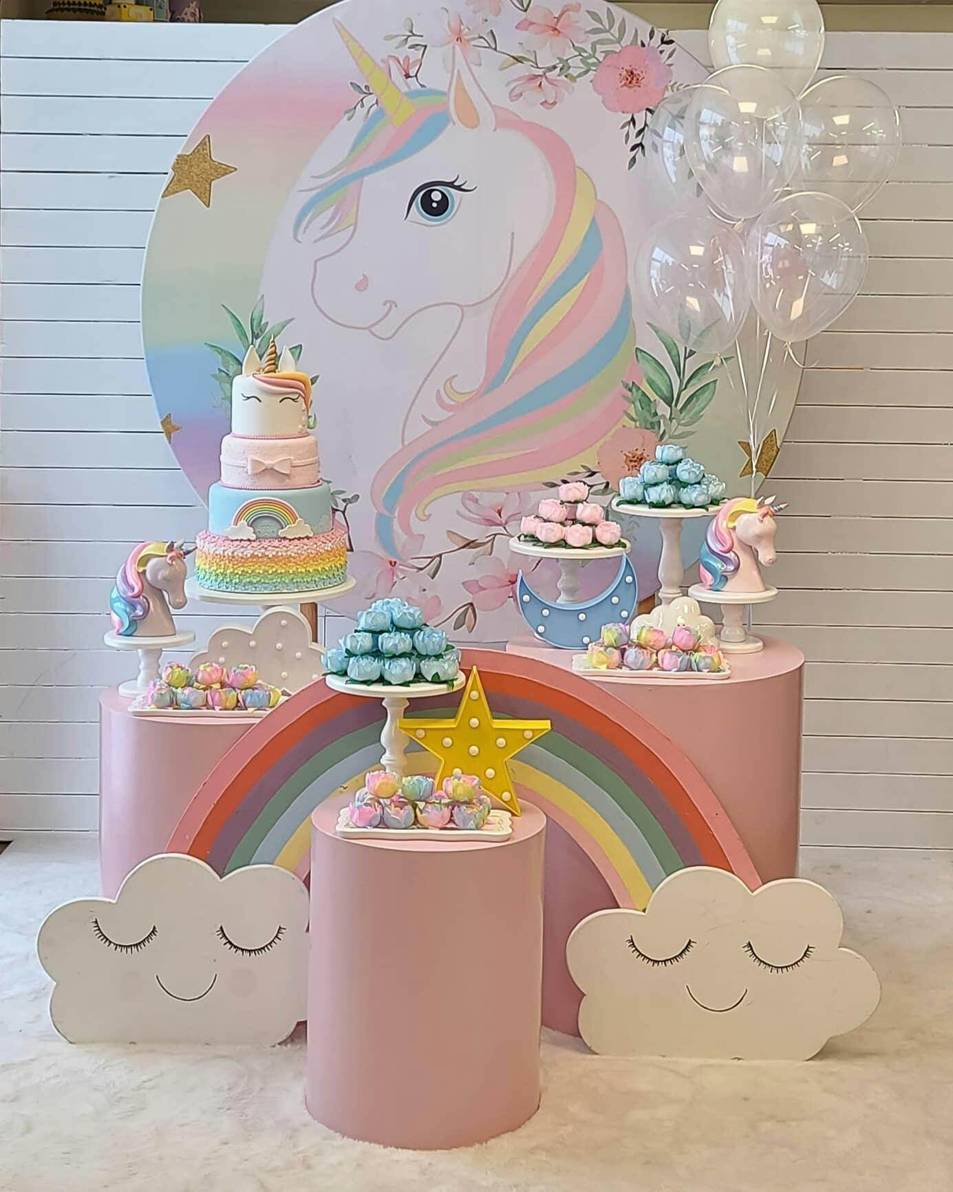 Pink Floral And Unicorn Round Happy Birthday Backdrop