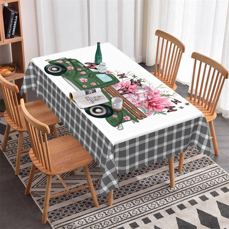 Pink Floral Green Truck Butterfly Kitchen Tablecloth