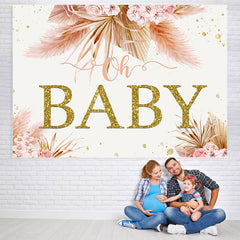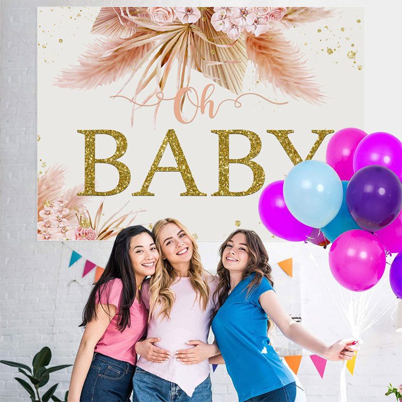 Boho Pink Floral Gold Glitter Baby Shower Backdrop