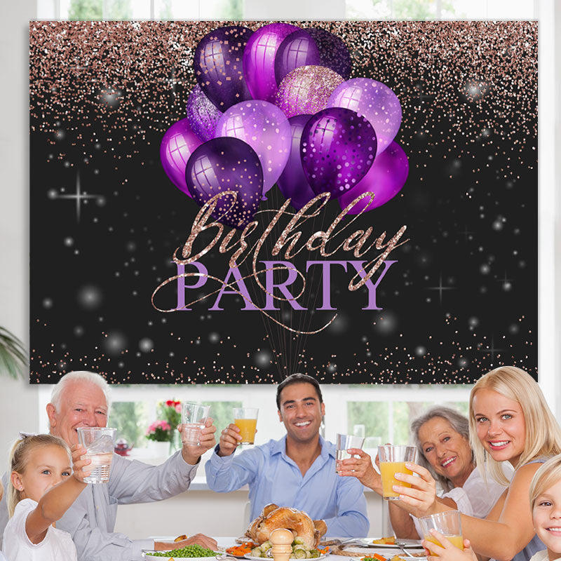 Rose Gold Glitter Purple Balloon Birthday Backdrop