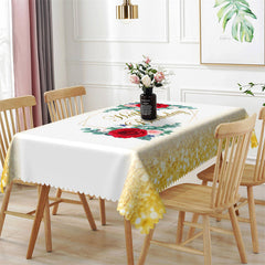 Red And Pink Rose Glitter Happy Birthday Tablecloth
