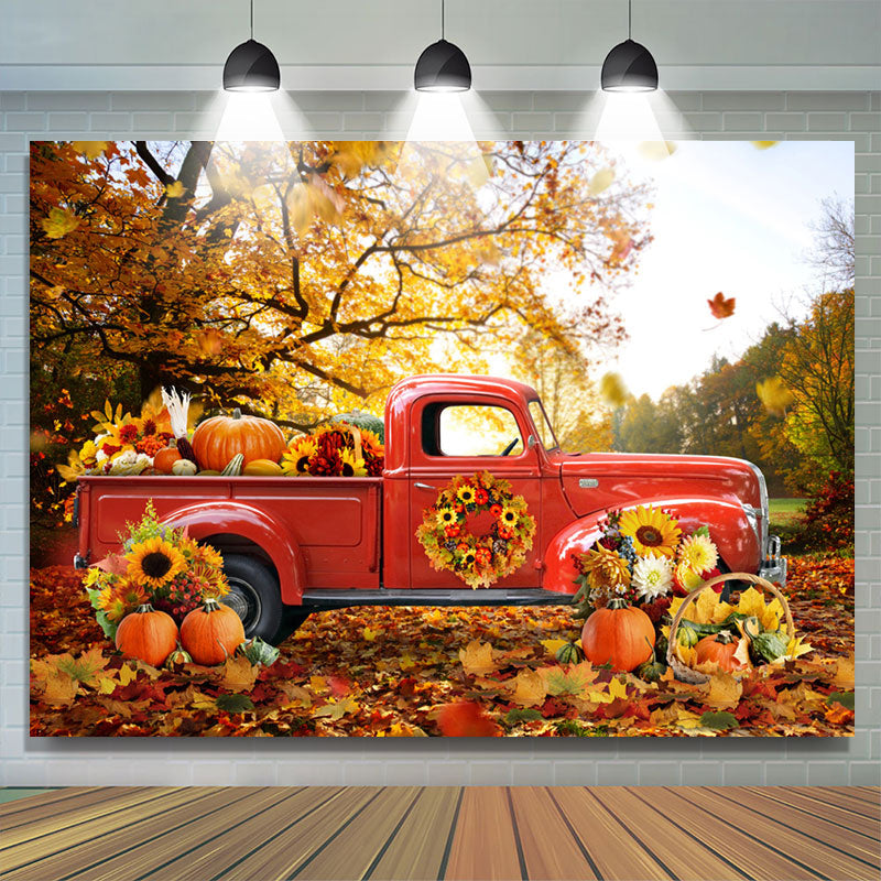 Red Truck Pumpkin Maple Tree Autumn Backdrop For Decor